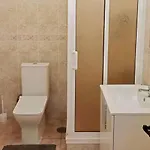 Den här strandnära lägenheten har en duschkabin och en separat toalett för din komfort. Hårtorkar, badlakan och handdukar finns också i badrummet.